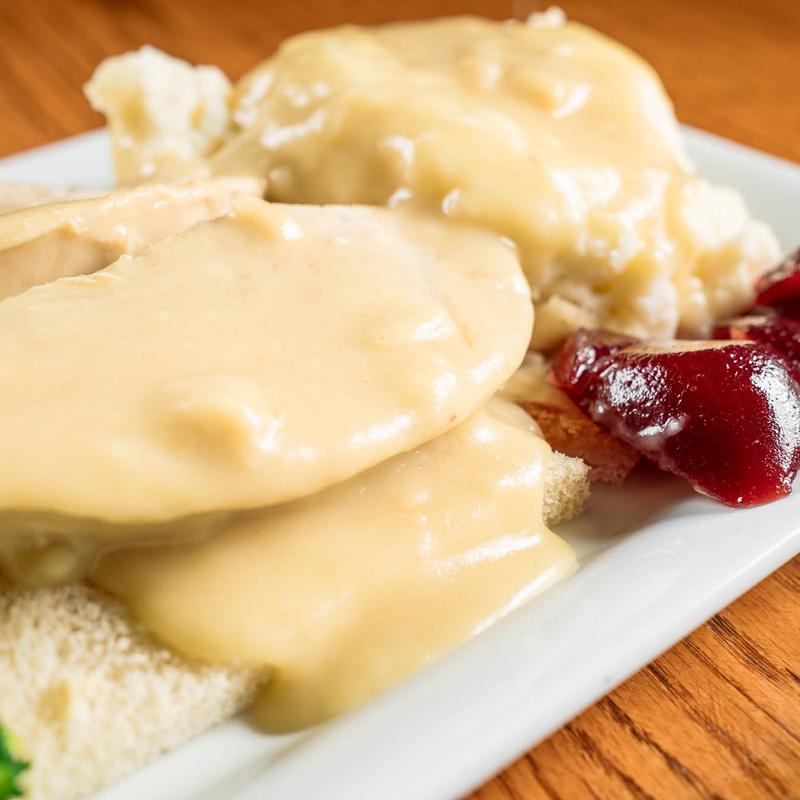Served with mashed potatoes, homemade gravy, cranberry sauce & an additional side